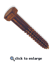 Lag Screw > Silicon Bronze > Hex Head Bolt Top > 1/4", 5/16", 3/8", or 1/2" Sizes When only the best will do, use our marine grade silicon bronze for all your fasteners and mounting hardware. Product Features: Our silicon bronze lag screws, also known as lag bolts, have a hex cap head, a sharp point, and coarse threads. Lag screws are essentially an oversized wood screw designed to penetrate and hold fast in wood. They are generally used to anchor metal to wood, or wood to wood, in applications where a through bolt and nut won't fit or is not appropriate. While through bolting usually creates a stronger bond, there are many non-critical circumstances where a lag screw will work just fine. Our Premium Silicon Bronze Lag Screws contain 3% Silicon, for maximum corrosion resistance and superior durability. Specifications & Pricing: